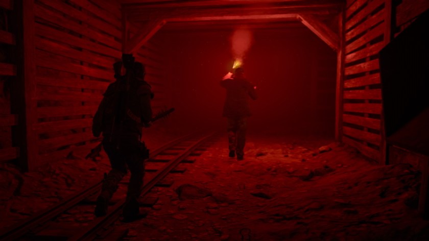 Speaking of the hordes, they aren’t quite as massive as I was expecting, but they are about as terrifying. Given the damage that just a few infected can do if they get to you, I knew I would never survive a close encounter with a few dozen or more of the rabid sonsabitches. So I steered very clear whenever I caught a glimpse of one. And then I found my first cave in the game, and if you’ve ever played a video game you know that caves are Where It’s At. There had to be something good in there. So I crouched low and started sneaking in, casting my flashlight about, watching for spookies. I got pretty deep before turning a corner and swinging my light toward a huddled mass of heaving infected, hunched and breathing heavy. They whipped their collective heads toward me and it was like that scene in Pirates of the Caribbean: Dead Man’s Chest where Jack Sparrow is running from the big group of cannibals. I busted ass out of the cave and hopped on my bike quicker than you can say I am Legend: The Video Game. Later, when I was slightly more proficient in combat, I found a NERO camp under a railroad bridge. NERO camps are exciting because once you power them up and get inside, an injector that permanently increases a stat awaits. So I hopped off my bike and got to work on finding gas for the generator when I spotted a horde… above me, in a car of the train stopped on the bridge. I backed away slowly, but then I noticed there were explosive barrels, crates, and gas cans placed at seemingly strategic places around the camp. Could I take out a horde this early? I could just time my shots and take out a few chunks, then clean up the rest… yes, I thought, and decided to go for it. I positioned myself in the road below, shot a few of them to get their attention, and as they spilled out of the car, dozens of arms and legs clamoring over each other, I lined up a shot with a gas truck. I pulled the trigger. *Click*. *Ting*. Nothing. I hit it but it didn’t explode. Uh. Uhhh. They’re moving so fast, they’re going to get *click* I shot again. *BOOM* Huge explosion. But I was already jumping on my bike. I was two seconds too late with the second shot. The truck took out a handful, but the rest were already on me. I managed to get away but not without a few swipes to my bike.