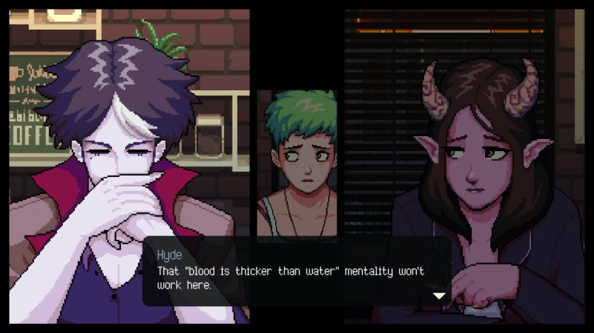 Speaking of interpersonal interactions (Segue King 2021 babayyyy), I also played through the charming Coffee Talk recently. I remember hearing about this retro-looking indie game a year ago, when it was released, but I quickly forgot about it. The curse of the quaint indie game, sadly. I just happened to see it while scrolling through sale titles on the PlayStation Store, though, and it seemed like such a perfect game for this wintry time of year. Serving coffee and other hot drinks and listening to strangers share the details of their lives? Yes, please.