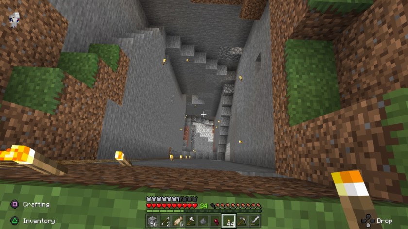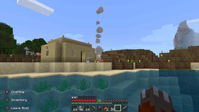 Those dipshits aside, we’ve been having a blast (why did I do that to myself? I could have used any other word to describe our shared experience, but no. I went with blast. *shivers in creeper-related stress disorder). Other than the semester I played the game with my students, I’ve never played with this many people before (there are six of us so far), so it’s very rewarding knowing that I can at one moment contribute something to the collective group, and at another go off and work on something on my own that someone else might run across and think is neat. Just yesterday I crossed over Russell’s impressive bridge that connects our mainland with the lands to the East, Amy recently showed me her massive hole (yes, I think she knew what she was doing when she referred to it as such), Tab and Tirzah have cultivated an expansive farm, and I have been sailing to distant lands to both leave markers for exploration and, as a bonus, import wolves (which our lands are sadly lacking). We’ve been very chill and loose about it, and there are no expectations or ultimatums. We help out, we do our own thing, we are basically just having fun. It’s such a welcome change of pace in light of the big, AAA gauntlet I put myself through (willingly and with much fun to be had, of course) in the fall and early winter.