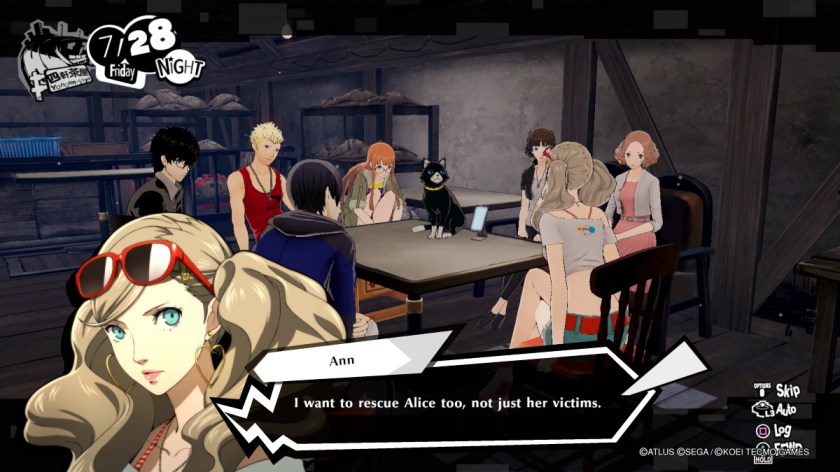 Part of what might be at the center of her tenacity is her seemingly eternal optimism. She’s not the kind of flighty blonde you might find in other media, where her optimism comes from a lack of awareness or detachment from reality. Ann is smart and knows when things are grim, but she also knows that it’s important for a friend group to have someone who reminds them that things aren’t as terrible as they seem. Hope is never lost. In Strikers, the first major enemy you face is an idol whose twisted desires for revenge have made her into a cruel, abusive, malevolent pop star who delights in using her fame to treat people the way she was treated when she was in high school. Recognizing a fellow outcast and victim of bullying, Ann acts as the group’s moral compass when tensions run high and some want to make her pay in much harsher ways. Ann’s ability to empathize with even some of the most unlikeable and aggressive enemies is something I admire. She doesn’t empathize with Kamoshida, though, which is good. Because fuck that guy.
