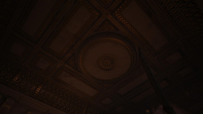 Speaking of gorgeous scenery, I really want to talk about how beautiful this game is. I’m not talking about the sexy thirst traps yet. We’ll get there. Keep your pants on. Pants on, eyes up, because we’re talking about some ceilings. There is so much visual detail in this game that I legitimately can’t fully do it justice in either writing or pictures. Virtually none of the screenshots I’m sharing really represent these visuals in their full glory. I do want to focus on a few examples of the graphics and visual design, though, and ceilings are one of them.