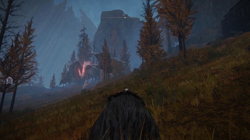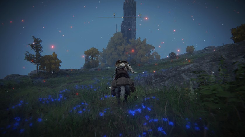 Let’s talk about some of those things I love. The art style and world design (on a visual level) are amazing. The actual graphics, as in things like texture, lighting, unique assets, etc. are not exactly optimal, but if you view the world from a distance and focus on the macro instead of the micro, this is a stunningly beautiful world. The word that came to mind at one point, as I was riding my spectral steed (what a cool description, too) through a low valley with a massive dragon sleeping in the distance and an enormous, glowing tree towering over virtually every corner of the map, was “majesty.” Elden Ring does the majesty of epic fantasy better than almost any game I’ve played. Regardless of the part of the world I was in, I could almost always swing the camera around and have some spectacular view (though this made the lack of a photo mode extra annoying).
