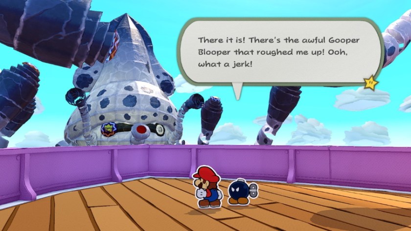 Much has been made of the combat system, and I have mixed feeling about it. Some people seem to love it, some people seem to hate it. I thought I liked it more than I’d expected to, until I encountered some of the more difficult combat puzzles later in the game. I was so excited when I got to the gameshow level… until I realized you essentially had to solve combat puzzles to win points. There were also some boss fights that had particularly frustrating aspects related to the puzzle grid. It wasn’t bad enough to ruin the game for me, and most encounters were either fun or just passable. I would just absolutely love a return to party-based, RPG-like combat. We won’t see another Paper Mario game for some time now, I guess, but I’ll have my fingers crossed anyway.